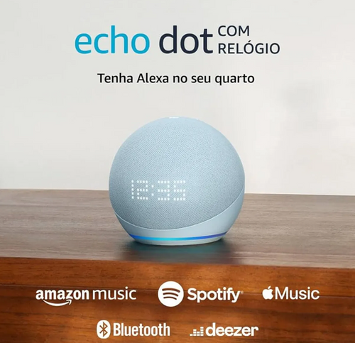 Echo Dot 5ª Geração Amazon Assistente Virtual Azul-Claro com Relógio Wi-Fi Bluetooth
